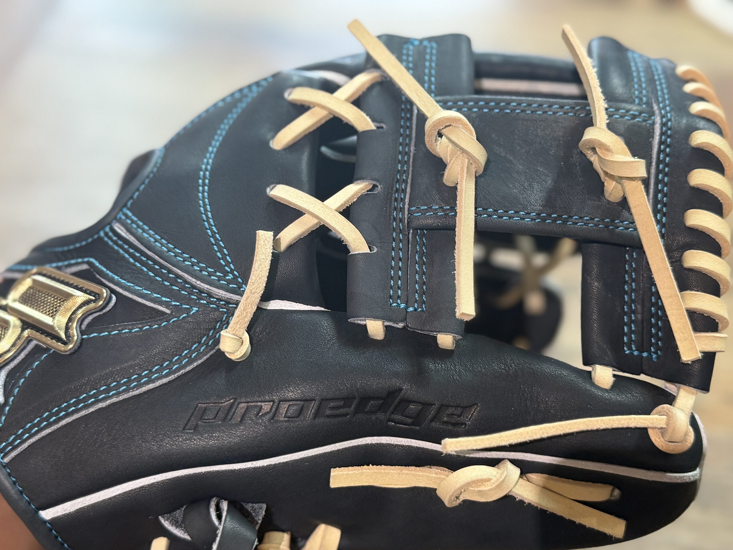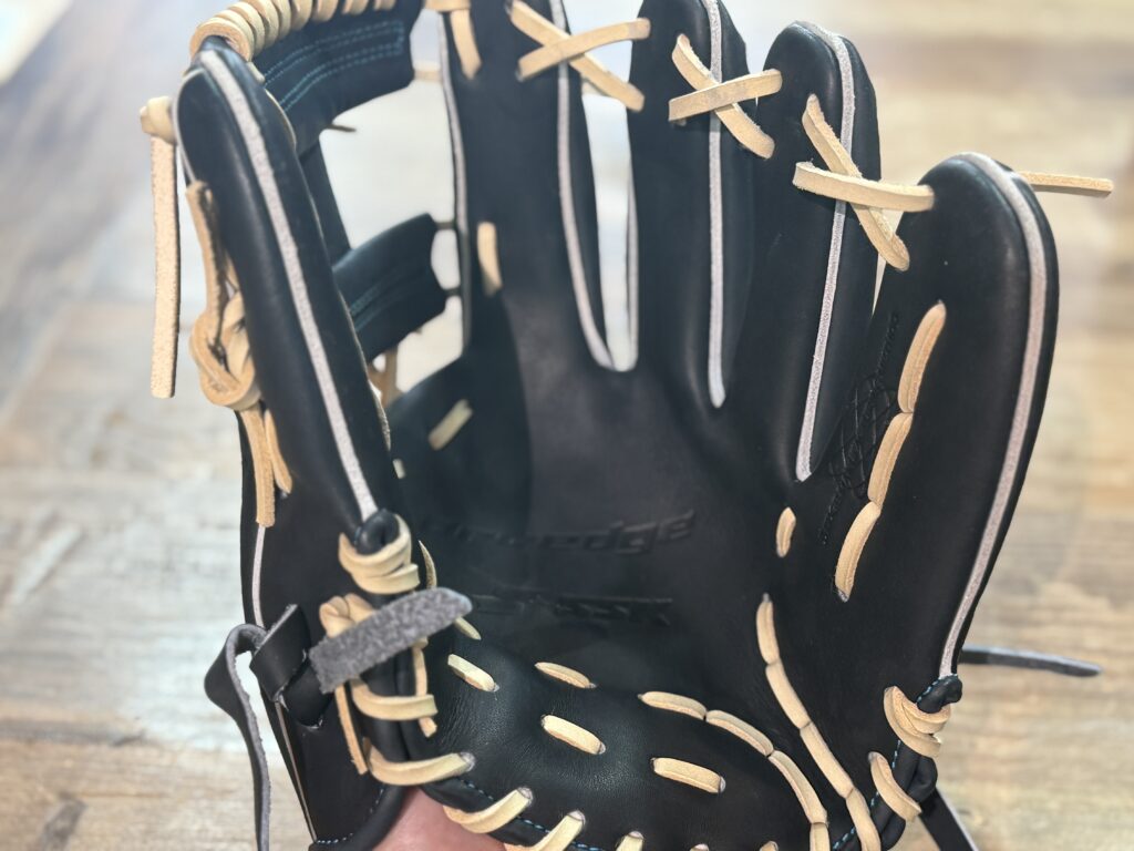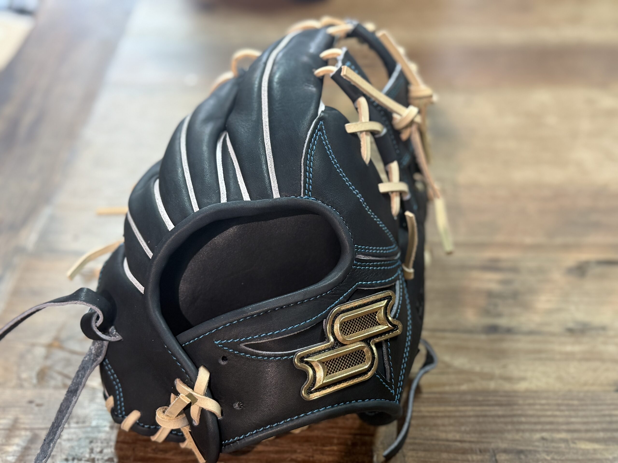 見た目はブラックをベースにキャメルのレースやブルーのステッチが入っており、派手すぎず存在感のあるデザインです。価格帯も3万円前後と、上級クラスの軟式グラブとしては比較的手の届きやすいラインに収まっています。
